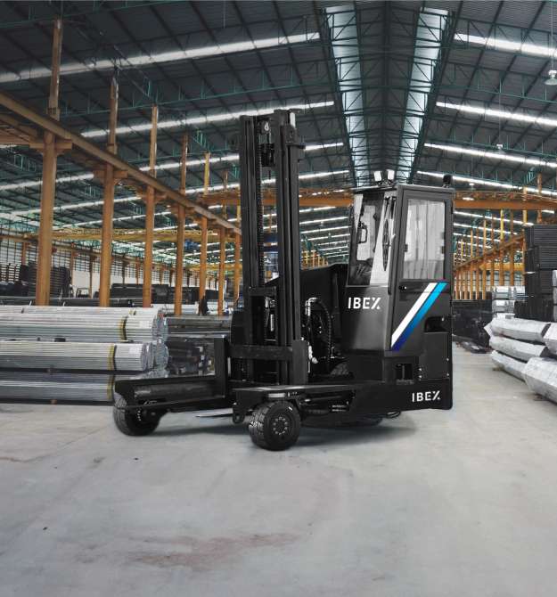 The IBEX Multi-Directional Forklifts are designed to improve the handling of long and bulky loads. With advanced multi-directional steering, these forklifts can move forwards, backwards, and sideways,